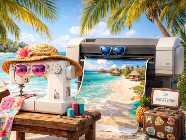 The sewing machine and the large-format printer are